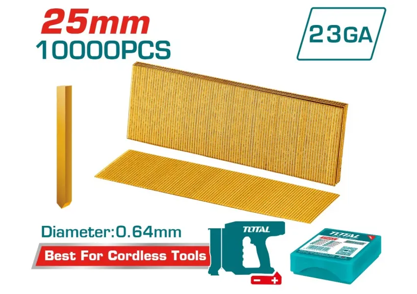 Մեխ կրակող գործիքի գամեր անգլխիկ 25մմ 10000 հատ TOTAL TAC06825