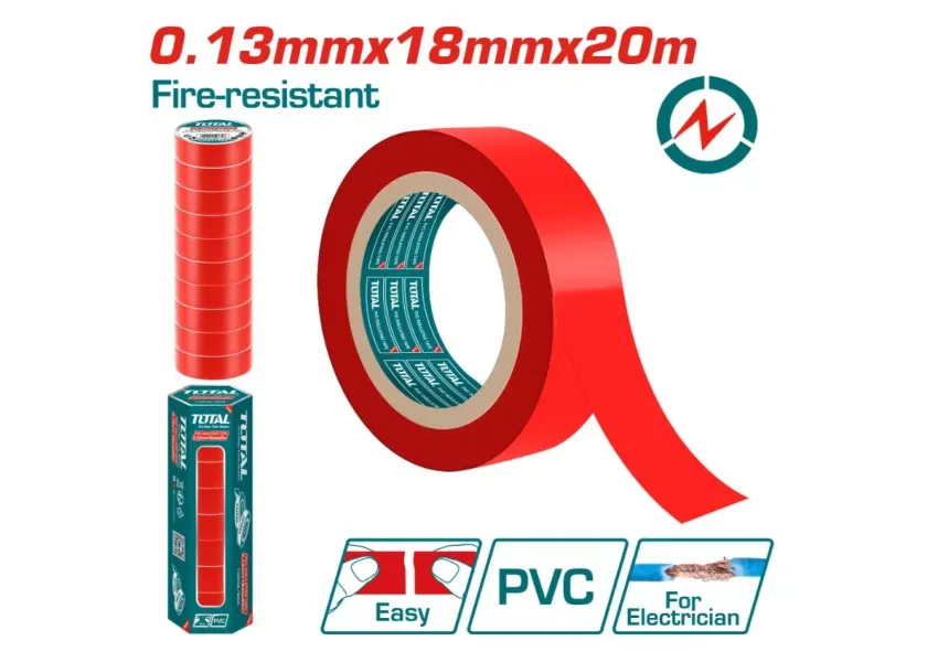 Էլեկտրականության հետ մասնագիտական և ոչ մասնագիտական աշխատանքներում ամենապրակտիկ աքսեսուարը, որ անընդհատ պետք է լինի էլեկտրիկի ձեռքի տակ, մեկուսիչ ժապավենն է։ TOTAL THPET1112 կարմիր ժապավենը պատրաստված է բարձրորակ ՊՎՔ նյութից և հրակայուն է։ Երկարությունը՝ 20մ։