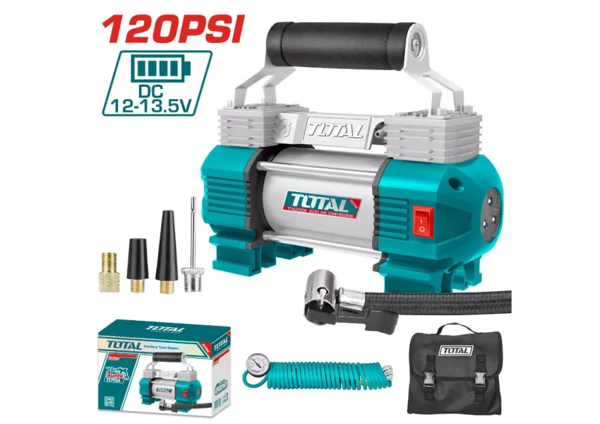 Բարձր արտադրողական կոմպրեսոր՝ 8 բար առավելագույն ճնշմամբ և ներկառուցված լույսով: Փաթեթում՝ 3 մ օդային խողովակ, ադապտերներ:
