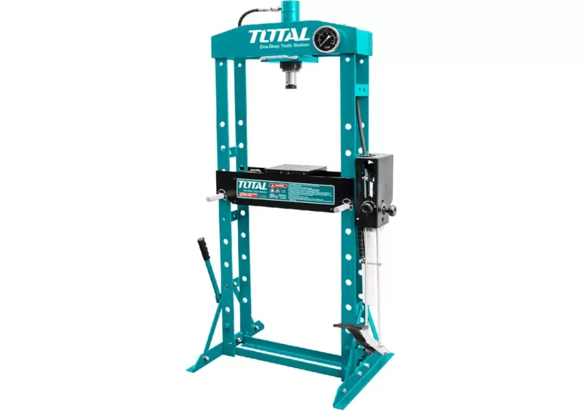 TOTAL THSPR2002 հիդրավլիկ սեղմիչը թույլ է տալիս կատարել մի շարք գործողություններ. կաղապարում, ուղղում, սեղմում, ճկում։ Օգտագործվում է հիմնականում ավտոտեխսպասարկման կետերում՝ մեքենաների դետալներն ու սռնակալները սեղմելու համար: Առկա է ոտնակ, որը թույլ է տալիս մասնագետին աշխատել ազատ ձեռքերով։ Բարձրացնելու առավելագույն քաշը՝ 20 տոննա։
