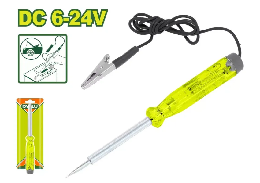 Նախատեսված է ավտոմեքենաներում 6-24Վ հաստատուն լարմամբ էլեկտրական սարքավորումների դիագնոստիկայի համար։ Հարմարավետ և անվտանգ աշխատանքի համար բռնակը մեկուսիչ ացետատային նրբաթելից (AS) է։ Փաթեթում առկա է տեստերի սեղմիչ: