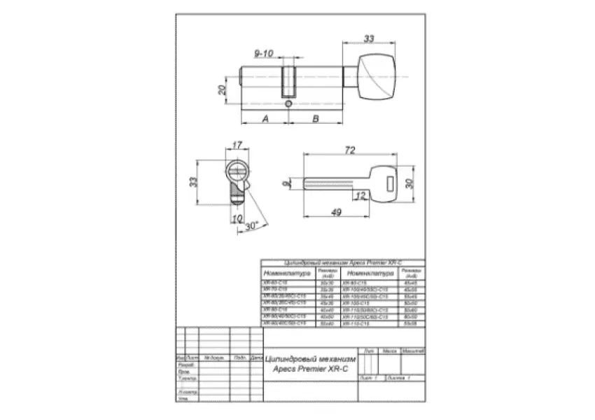 Բարձրորակ Apecs XR գլանային մեխանիզմները պատրաստված են արույրից: Նախատեսված են մուտքի դռների համար: Միջուկները փորձված են և ունեն սերտիֆիկատ համաձայն՝ ԳՕՍՏ 5089-2011: Գլանային մեխանիզմները պաշտպանված են հարվածներից և հորատումից: Խորհուրդ տրվող պարագաներ՝ միջուկների հետ տեղադրման համար (վաճառվում են առանձին)․ Apecs Protector Basic, Apecs Protector Pro 50։