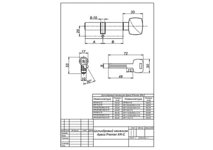 Բարձրորակ Apecs XR գլանային մեխանիզմները պատրաստված են արույրից: Նախատեսված են մուտքի դռների համար: Միջուկները փորձված են և ունեն սերտիֆիկատ համաձայն՝ ԳՕՍՏ 5089-2011: Գլանային մեխանիզմները պաշտպանված են հարվածներից և հորատումից: Խորհուրդ տրվող պարագաներ՝ միջուկների հետ տեղադրման համար (վաճառվում են առանձին). Apecs Protector Basic, Apecs Protector Pro 50: