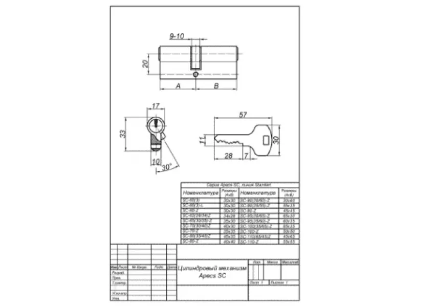 Apecs SC գլանային մեխանիզմները պատրաստված են արույրից: Նախատեսված են մուտքի դռների համար: Միջուկները փորձված են և ունեն սերտիֆիկատ համաձայն՝ ԳՕՍՏ 5089-2011: Գլանային մեխանիզմները պաշտպանված են հարվածներից և հորատումից: Խորհուրդ տրվող պարագաներ՝ միջուկների հետ տեղադրման համար (վաճառվում են առանձին)․ Apecs Protector Basic, Apecs Protector Pro 50։