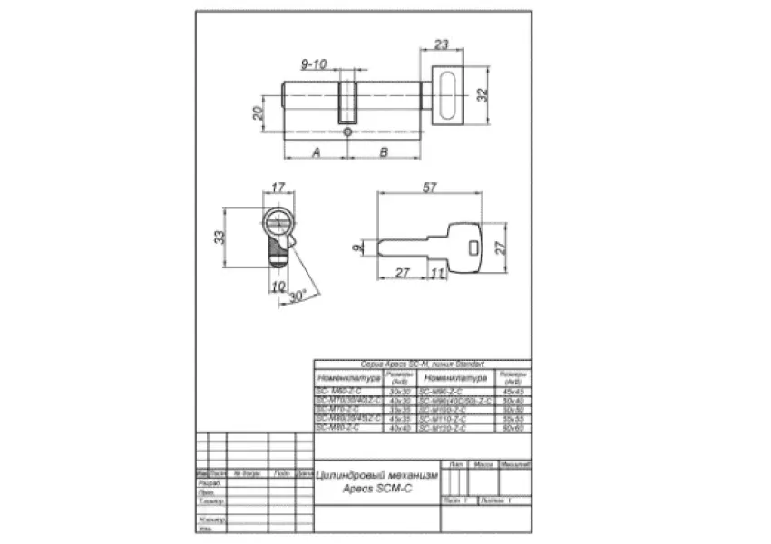 Apecs SM գլանային մեխանիզմները պատրաստված են արույրից: Նախատեսված են մուտքի դռների համար: Միջուկները փորձված են և ունեն սերտիֆիկատ համաձայն՝ ԳՕՍՏ 5089-2011: Գլանային մեխանիզմները պաշտպանված են հարվածներից և հորատումից: Խորհուրդ տրվող պարագաներ՝ միջուկների հետ տեղադրման համար (վաճառվում են առանձին)․ Apecs Protector Basic, Apecs Protector Pro 50։