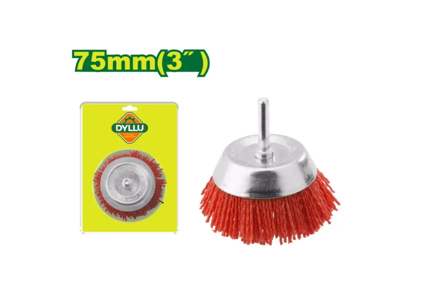 DYLLU DTNY1402 նեյլոնե խոզանակն օգտագործվում է խորդուբորդության, կառուցքավորության, փրփուրների հանման, ներկազերծման նպատակով։ Հարմար է մետաղական և փայտե մակերեսների մշակման համար։ Աշխատանքային նյութը՝ պողպատ, պողպատի ձուլվածք, չժանգոտվող պողպատ, գունավոր մետաղներ, ալյումին, փափուկ և կոշտ փայտանյութեր։ Տրամագիծը՝ 75 մմ։
