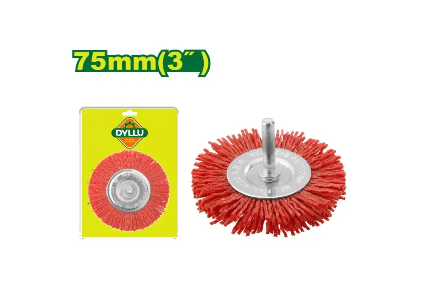 DYLLU DTNY2401 նեյլոնե խոզանակն օգտագործվում է խորդուբորդության, կառուցքավորության, փրփուրների հանման, ներկազերծման նպատակով։ Հարմար է մետաղական և փայտե մակերեսների մշակման համար։ Աշխատանքային նյութը՝ պողպատ, պողպատի ձուլվածք, չժանգոտվող պողպատ, գունավոր մետաղներ, ալյումին, փափուկ և կոշտ փայտանյութեր։ Տրամագիծը՝ 75 մմ։