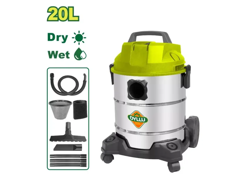 DYLLU DTVR4A20 փոշեկուլը համալրված է 20լ փոշեհավաք կոնտեյներով։ Փաթեթում առկա են ստանդարտ աքսեսուարներ․ - 1 հատ քաշող խողովակ (1.5մ), - 1 հատ կտորե պայուսակ՝ փոշի հավաքելու համար, - 1 հատ պոլիուրետանային փրփուրի ֆիլտր, - 1 հատ ծերպավոր գլխիկ, - 3 հատ երկարացման խողովակներ Φ32մմ, - 1 հատ գորգերի և հարթ հատակների համար քաշող գլխիկ՝ համակցված գլխիկի հետ։