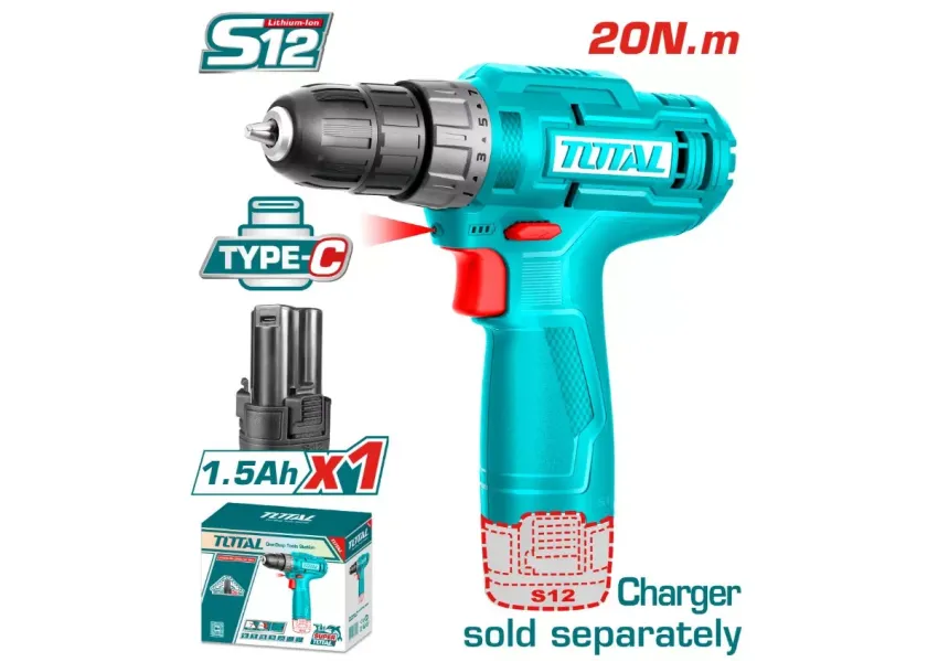 TOTAL TDLI12428 պտուտակադարձիչն ապահովում է արդյունավետ ամրացում: Տևական աշխատանքը հնարավոր է վերալիցքավորվող մարտկոցի շնորհիվ: Առկա է ներկառուցված աշխատանքային լույս։ Ներառում է. 1 հատ 1.5 Աժ մարտկոց (TBLI12153)։ Լիցքավորիչը վաճառվում է առանձին։