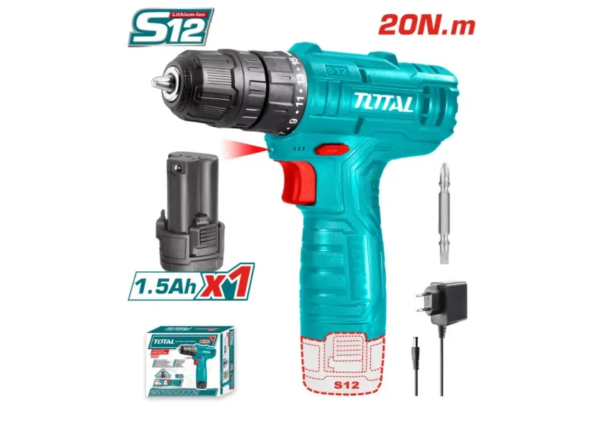 Պտուտակադարձիչ մարտկոցային 12Վ (մարտկոցով, լիցքավորիչով) TOTAL TDLI12415
