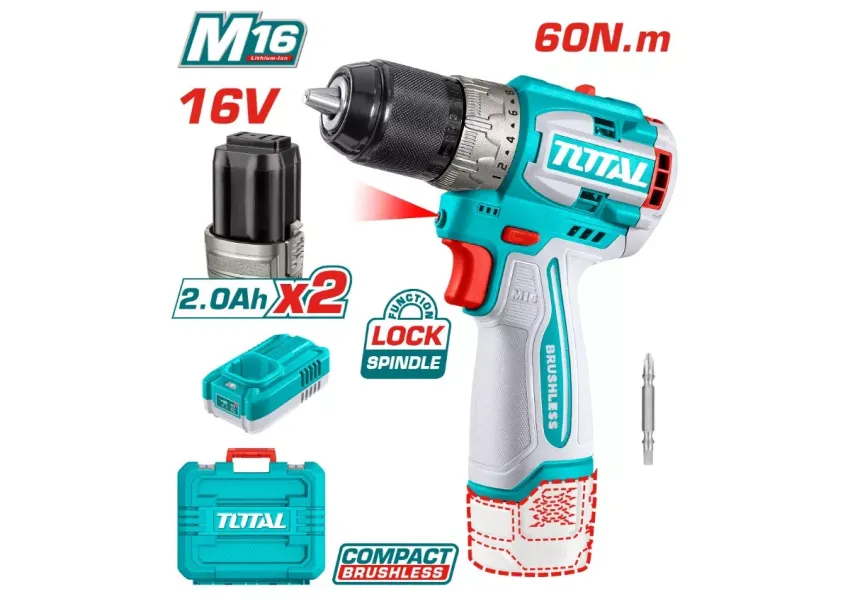 Պտուտակադարձիչ մարտկոցային 16Վ 60Նմ (2 մարտկոցով, լիցքավորիչով) TOTAL TDLI16682