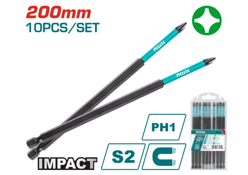 200 մմ երկարությամբ հարվածային բիթերի հավաքածուն նախատեսված է խաչաձև PH1 բնիկով ամրացումների համար:
