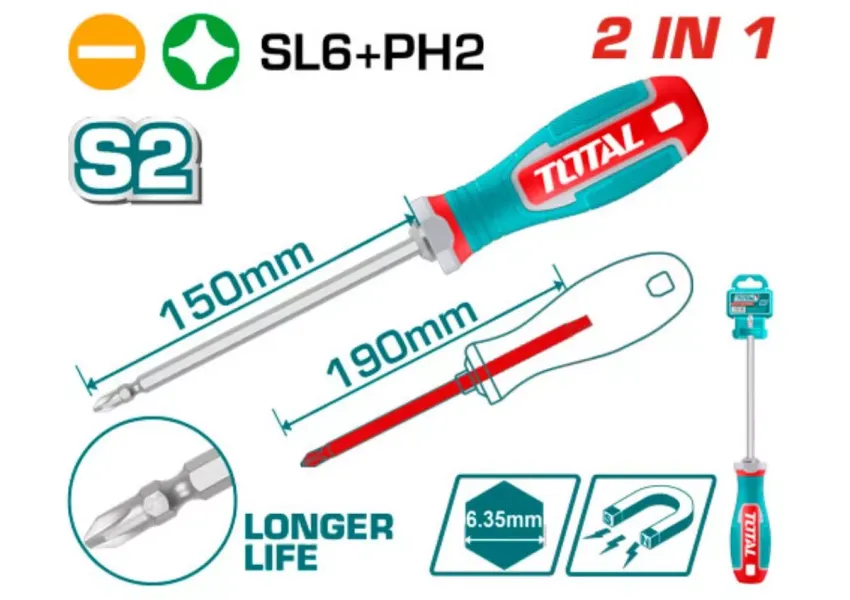 Պտուտակահան 2-ը 1-ում SL6+PH2 TOTAL THT250266