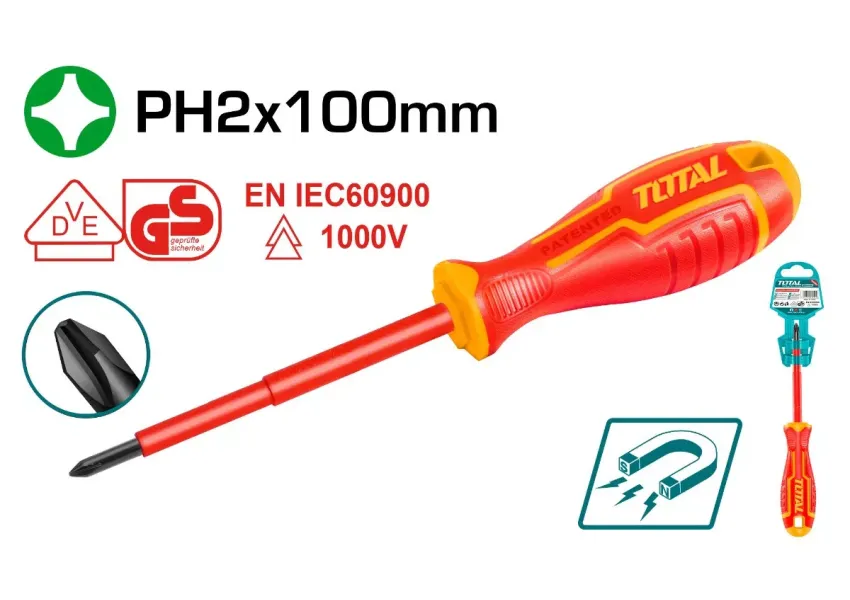 Դիէլեկտրիկ պտուտակահանն օգտագործվում է պտուտակները ձեռքով ամրացնելու համար: Բռնակը ծածկված է չսայթաքող նյութով, որն ապահովում է պտուտակիների ամուր ֆիքսումը: Մեկուսացումն ապահովում է անվտանգություն՝ էլեկտրական սարքավորումները վերանորոգելիս կամ էլեկտրաէներգիայի աղբյուրի մոտակայքում: PH2 խաչաձև պտուտակահանը դիմանում է մինչև 1000Վ լարմանը։
