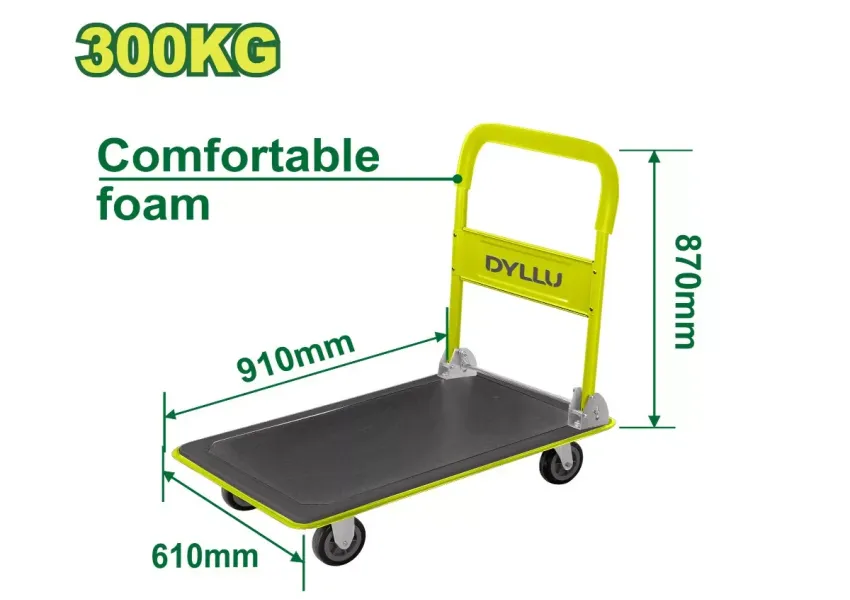 DYLLU DTWB1330 ծալովի սայլակը հարմար է պահեստային տարածքներում, տնային պայմաններում, ցուցահանդեսների տաղավարներում մինչև 300կգ առավելագույն քաշով իրեր տեղափոխելու համար։ Պողպատե բռնակը պատված է փրփրապլաստով, որի շնորհիվ այն ունի հարմարավետ բռնվածք։