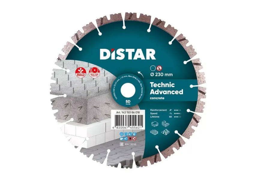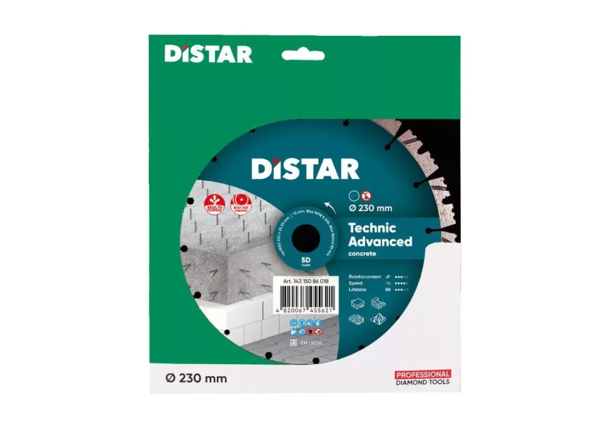 Distar Technic Advanced ունիվերսալ ալմաստե սկավառակը մշակված է սալաքարերի, բետոնի և սև գրանիտի կտրման աշխատանքներում կիրառելու նպատակով։