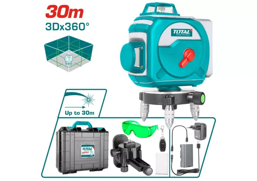 3D լազերային հարթաչափը նախատեսված է կանաչ լազերային գծերի պրոյեկտման համար՝ մինչև 30 մ հեռավորության վրա։ Ապահովում է բարձր ճշգրտություն և հեշտացնում է շինարարական գործընթացները։