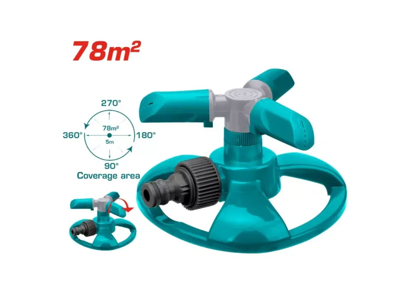 Պլաստիկ 3-աթև պտտվող ջրցանը նախատեսված է այգու և բակի արդյունավետ ոռոգման համար: Առկա է 360° պտտման հնարավորություն, ինչը թույլ է տալիս ջուրը հավասարաչափ բաշխել: 3/4" միակցիչով ջրցանը պատրաստված է ամուր ABS և PP պլաստիկից: