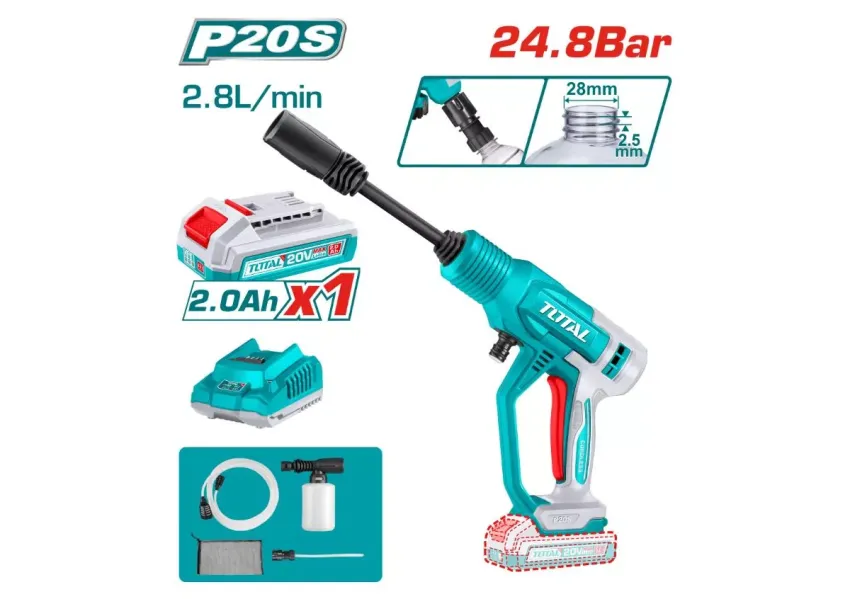 Բարձր ճնշման լվացող ատրճանակ (1 մարտկոց, 1 լիցքավորիչ) 20Վ 24.8 բար TOTAL TPWLI20362