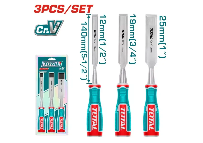 TOTAL THT41K0302 հավաքածուն բաղկացած է 3 հատ դուրերից: Սայրերի աշխատանքային մասը պատրաստված է քրոմ վանադիումի պողպատից և բնութագրվում է բարձր ամրությամբ։ Էրգոնոմիկ բռնակները ապահովում են արտադրանքի հուսալի պահպանումը ձեռքին և դրանց սայթաքման բացակայությունը: