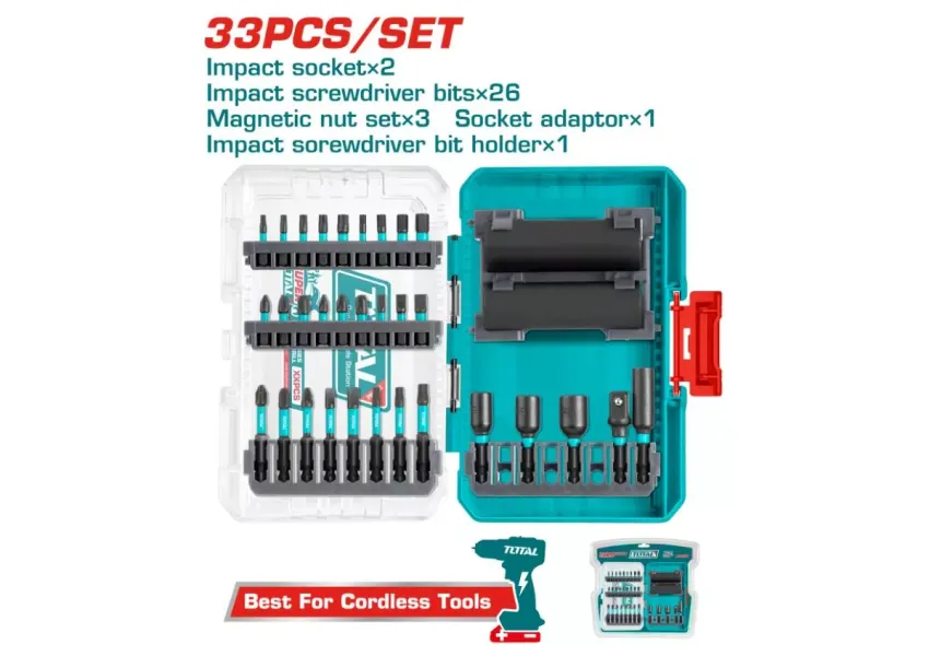 Հարվածային պտուտակահանների և բիթերի հավաքածու 33 հատ TOTAL TACSDL63306