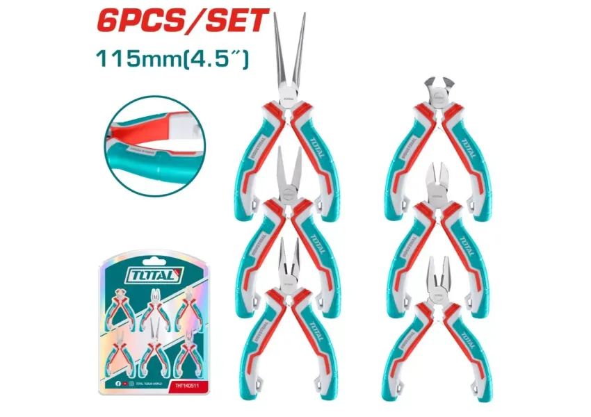 Հավաքածուի մեջ ներառված է 6 հատ աքցան․ 1 հատ համակցված աքցան, 1 հատ անկյունագծային կտրող աքցան, 1 հատ մետաղական դետալներ կտրող աքցան, 1 հատ երկարաշուրթ աքցան, 1 հատ հարթաշուրթ աքցան, 1 հատ ճշգրիտ աշխատանքների համար աքցան։
