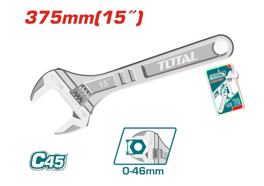 Կարգավորվող բանալին նախատեսված է տարբեր տրամագծերի ամրացումների հավաքման և ապամոնտաժման համար: Արտադրանքի աշխատանքային հատվածը պատրաստված է քրոմ վանադիումի պողպատից, որը դիմակայում է ծանր բեռներին: Առավելագույն բացվածքը՝ 46մմ։