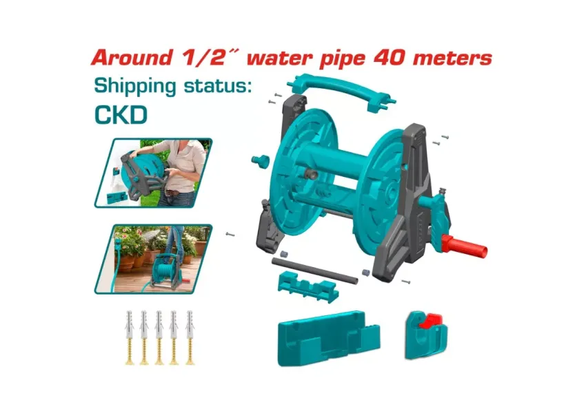 Խողովակի կոճը նախատեսված է մինչև 40 մետր երկարությամբ խողովակների հավաքման համար: Առկա է ծալվող բռնակ՝ հարմար պահեստավորման համար: