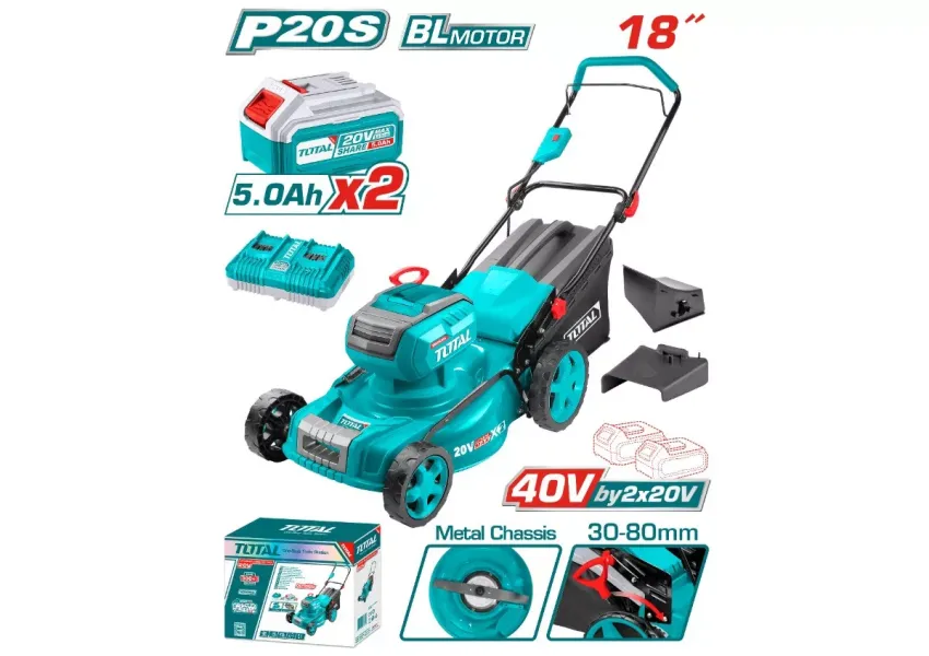 TOTAL TLMLI20186 խոտհնձիչը նախատեսված է 30-80մմ բարձրությամբ խոտ կտրելու համար։ Առկա է բարձրության կարգավորման 8 ռեժիմ։ Փաթեթում՝ 1 հատ խոտի պարկ, 1 հատ ցանկածածկի կցորդիչ, 1 հատ փողրակ (կիսախողովակ)։ Ներառված են նաև 2 հատ 2․0Աժ մարտկոց (TFBLI2053) և 1 հատ լիցքավորիչ (TCLI2034E)՝ միաժամանակ 2 մարտկոց լիցքավորելու հնարավորությամբ։