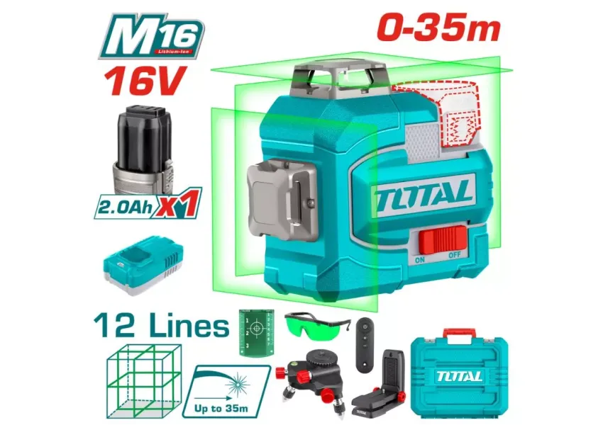 Լազերային 3D հարթաչափ մարտկոցային 16Վ 0-35մ TOTAL TLL301201