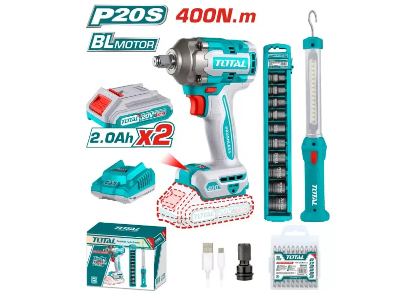 TOTAL TIWLI2040 գայկավյորտը հագեցած է անխոզանակ շարժիչով։ Հարվածների հաճախականությունը՝ 0-2100, 0-2500, 0-2900 հարված/րոպեում։ Պտտման առավելագույն մոմենտը՝ 400Նմ։
