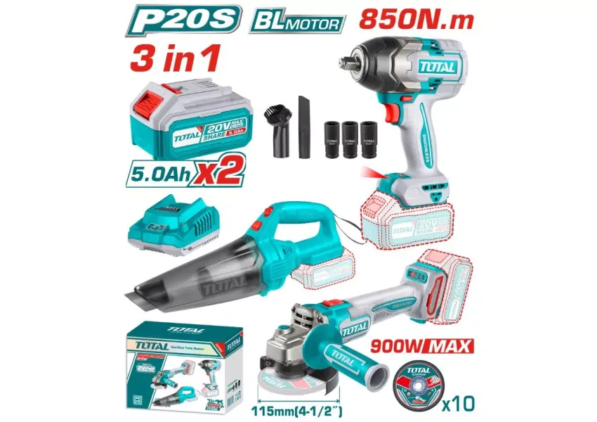Մարտկոցային գործիքների հավաքածու TOTAL TOSLI240789 (3 կտոր)