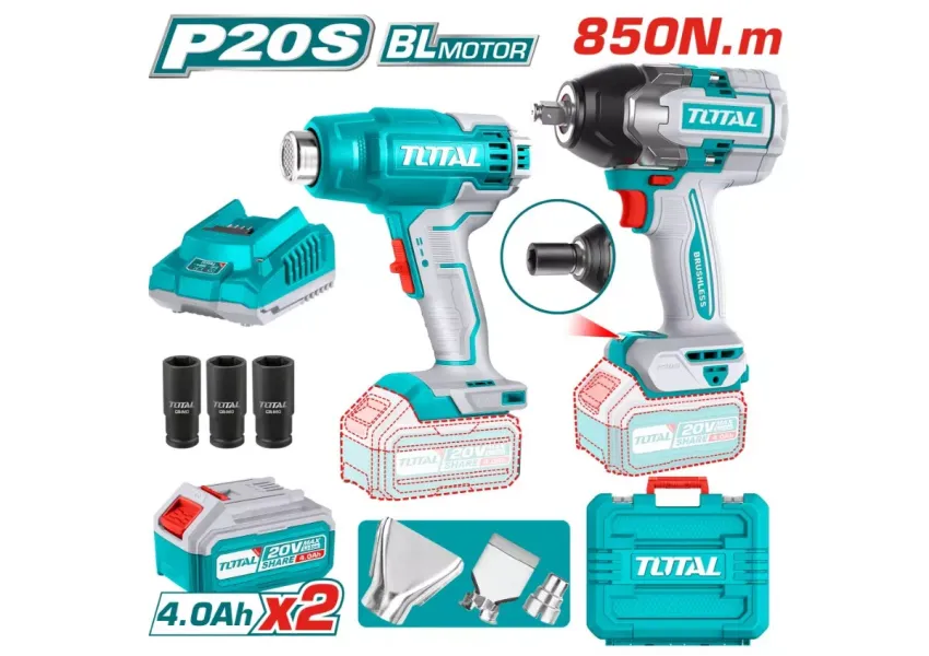Մարտկոցային գործիքների հավաքածուն հարմար է ամրացման աշխատանքներում կիրառելիս։ 20Վ լարմամբ գործիքների հավաքածուն ներառում է՝
