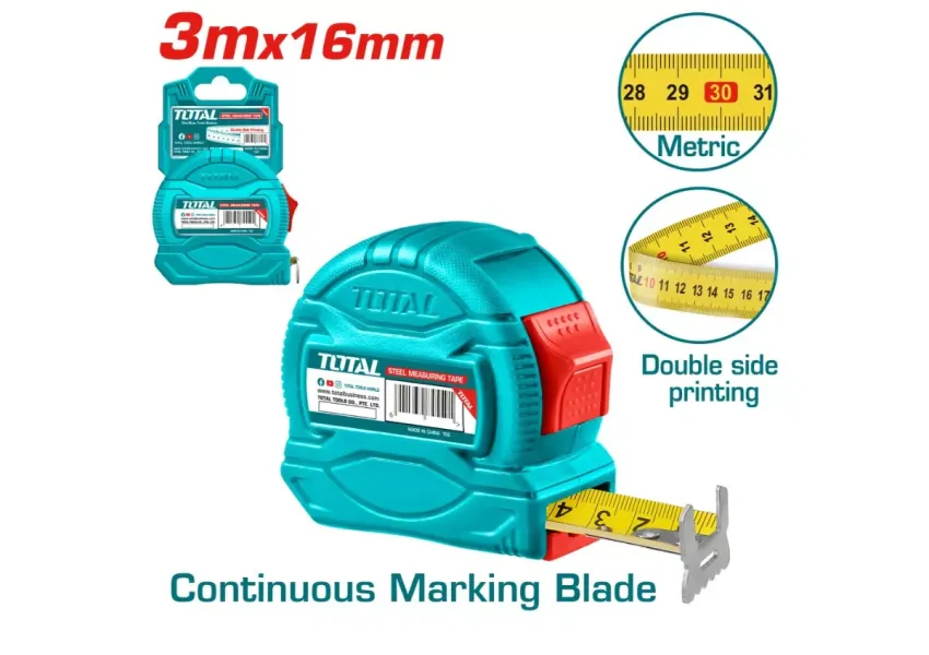 Մետրը կոմպակտ և հարմար գործիք է տարբեր տեսակի աշխատանքների ընթացքում չափումներ կատարելու համար: Չափիչն ունի ամուր ABS պլաստիկ պատյան, կրկնակի կոճակ: Չափման միավորը՝ մ/դյույմ։ Առավելագույն չափումը՝ 3մ։