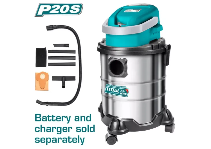 TOTAL TVLI2005E փոշեկուլն աշխատում է 20 Վ լիթիում-իոնային մարտկոցով, որն ապահովում է մինչև 8 կՊա կլանման ունակություն: Փոշեկուլը, շնորհիվ կառուցվածքի և առանձնահատկությունների, կատարում է արդյունավետ մաքրում: Փաթեթում ներառված են՝ հատակի խոզանակ, ճեղքավոր գլխիկ, HEPA ֆիլտր: Մարտկոցն ու լիցքավորիչը վաճառվում են առանձին: