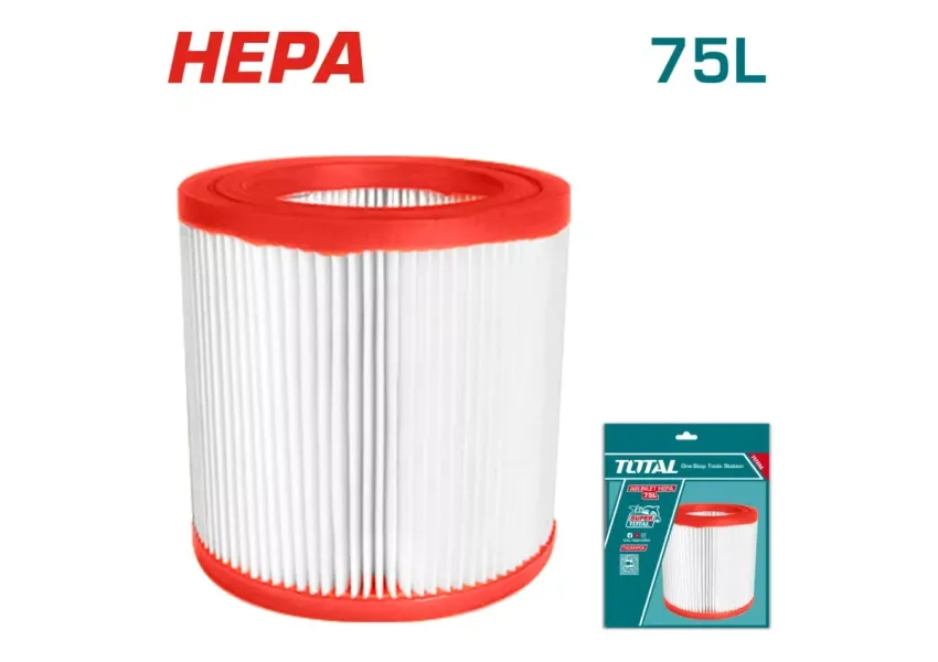 Պրեմիում դասի ֆիլտր՝ համատեղելի 75 լ ծավալով փոշեկուլների հետ: Ապահովում է մանր մասնիկների արդյունավետ կալանում, ինչը նպաստում է սարքավորման ծառայության ժամկետի երկարաձգմանը։ Համատեղելի է TOTAL TVC24751 փոշեկուլին։