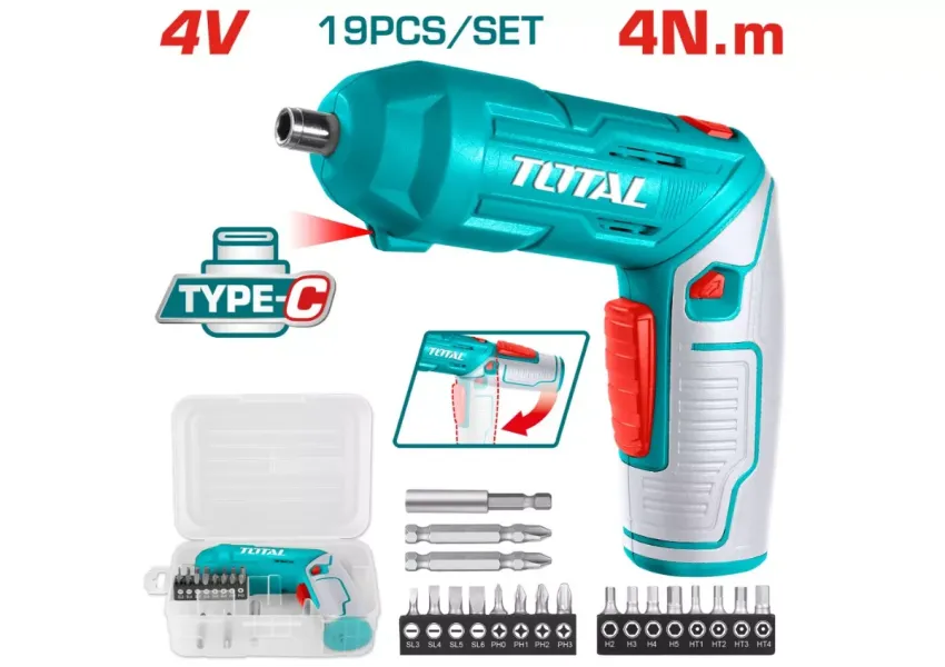 Պտուտակահան մարտկոցային (բիթերով) 4Վ 4Նմ TOTAL TSDLI0442