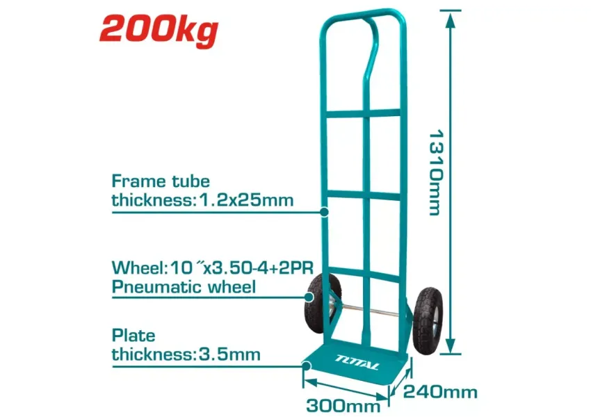 Երկանիվ սայլակը նախատեսված է մինչև 200 կգ ծանրաբեռնվածության համար։ Ունի ամուր շրջանակ և հարմարավետ բռնակներ՝ հեշտ շահագործման համար։