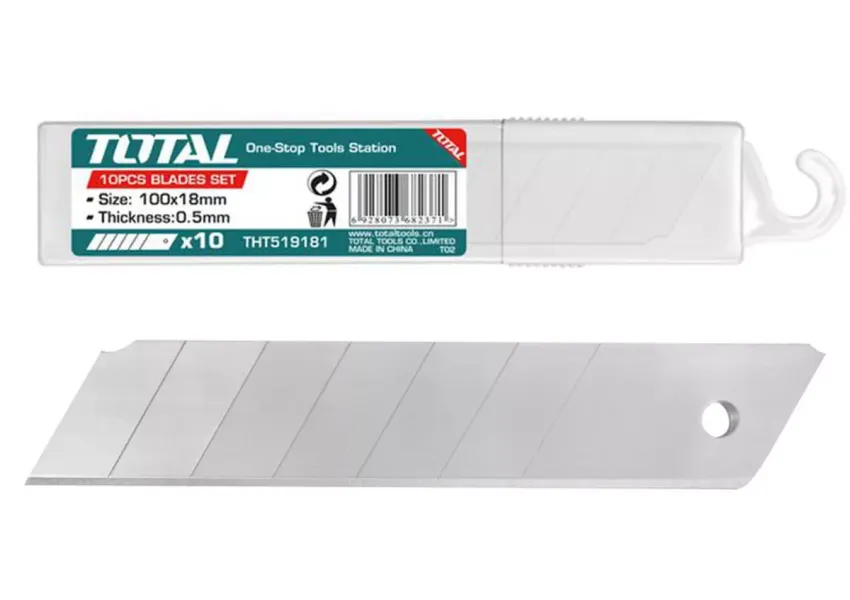 Սայրերի հավաքածուն նախատեսված է գրասենյակային և շինարարական դանակների համար։ Շեղբերը պատրաստված են SK5 ածխածնային պողպատից։ Հարմար է THT511816, THT511826, THT511836, TG5121806 դանակներին։ Հավաքածուում ներառված է 10 հատ շեղբ։