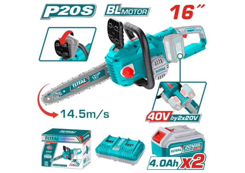Շղթայավոր սղոց մարտկոցային 40Վ (2x20Վ) 400մմ (2 մարտկոցով, լիցքավորիչով) TOTAL TGSLI401682