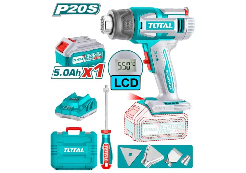 Շինարարական բազմապրոֆիլ աշխատանքներում պրակտիկ ֆենը աշխատում է մարտկոցով, ինչն ավելի արդյունավետ է դարձնում գործիքը։ Աշխատանքային ջերմաստիճանը՝ 30-300℃/30-550°C, որը կարգավորվում է ներկառուցված LCD էկրանի միջոցով։ Փաթեթում ներառված է՝ 1 հատ 5.0Աժ մարտկոց (TFBLI2053), 1 հատ լիցքավորիչ (TFCLI2001E), 1 հատ ռեդուկցիոն գլխիկ, 1 հատ ռեֆլեկտորային գլխիկ, 1 հատ տափակ գլխիկ, 1 հատ քերիչ։