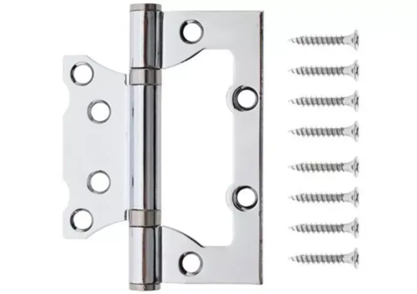 Պողպատե ունիվերսալ ծխնին վրադիր է: Code Deco 100x75x2.5-B2-CR ծխնին նախատեսված է միջսենյակային փայտե դռների համար: Համալրված է ճոճման առանցքակալներով, որոնք ապահովում են ծխնիի սահուն աշխատանքը: Ծխնին տեղադրվում են էլեկտրական գործիքներով: Դռան առավելագույն քաշը երկու ծխնի տեղադրելիս՝ 20կգ։