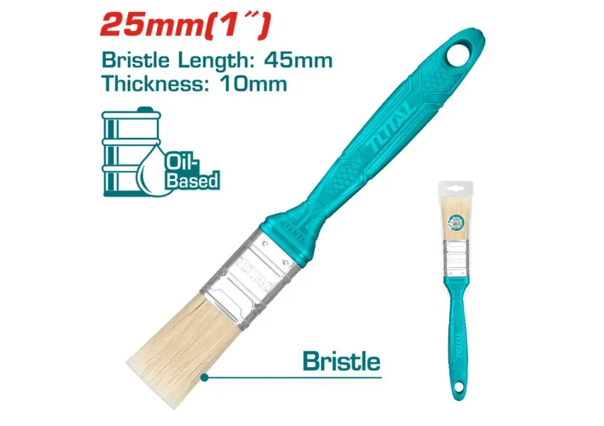 Վրձնի մազերն ապահով կերպով ֆիքսված են մետաղական ժապավենով: Պլաստիկ բռնակն ունի կախելու համար նախատեսված անցքեր, որոնք ապահովում են աշխատանքի հարմարավետությունը: