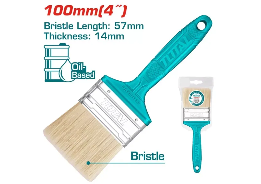 Վրձնի մազերն ապահով կերպով ֆիքսված են մետաղական ժապավենով: Պլաստիկ բռնակն ունի կախելու համար նախատեսված անցքեր, որոնք ապահովում են աշխատանքի հարմարավետությունը: