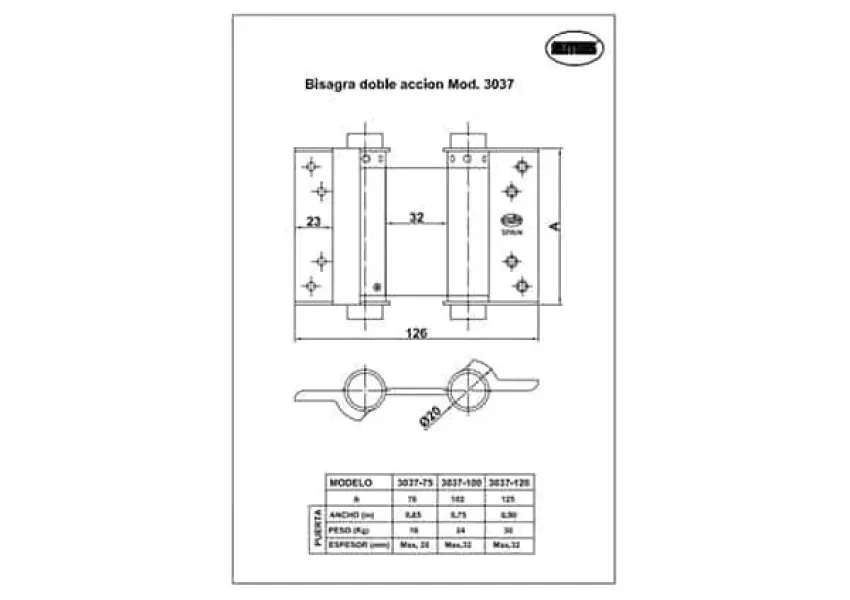 Ծխնի զսպանակով երկկողմանի Amig-3037-100*126