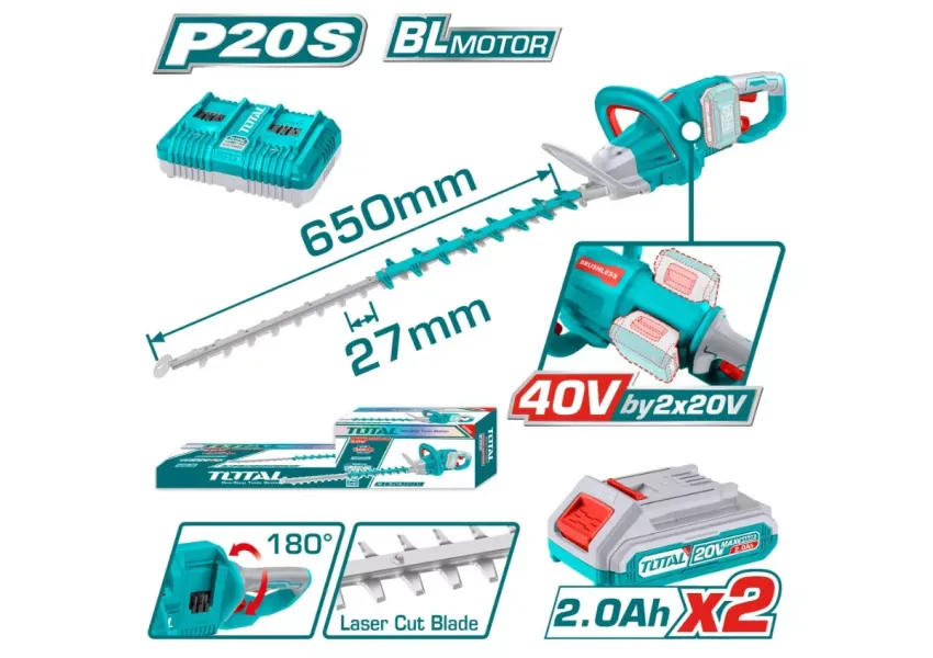 Թուփ էտող գործիք մարտկոցային 40Վ (2x20Վ) 650մմ (2 մարտկոցով, լիցքավորիչով) TOTAL THTLI400282