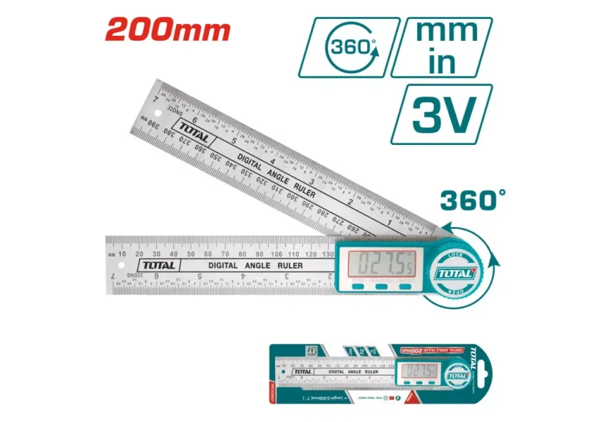 Թվային անկյունային քանոնը նախատեսված է վերանորոգման և հարդարման աշխատանքների ընթացքում անկյունները չափելու համար: Պատրաստված է չժանգոտվող պողպատից։ Դիմացկուն է կոռոզիայից և մեխանիկական վնասվածքներից: Սա երաշխավորում է երկար սպասարկման ժամկետը: Ունի ավտոմատ անջատում։ Փոքր չափսերն ապահովում են գործիքի հարմարավետ շահագործումը և պահպանումը: