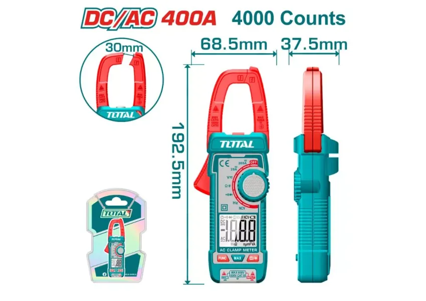 Թվային հոսաքաչափիչ աքցան հաստատուն-փոփոխական հոսանքի 400Ա TOTAL TMT762002