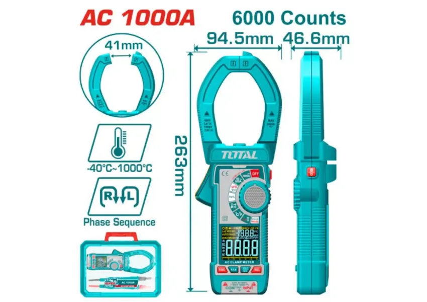 Թվային հոսաքաչափիչ աքցան փոփոխական հոսանքի 1000Ա TOTAL TMT7610001