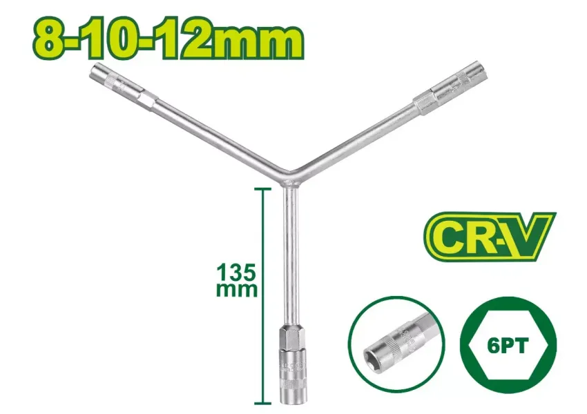 Ունիվերսալ Y-աձև բանալին պատրաստված է քրոմ-վանադիումային ձուլվածքից։ Չափը՝ 8-10-12մմ։ Յուրաքանչյուր ձողի երկարություն՝ 135մմ։